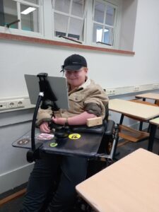Voor Paul van der Camp is werken op de computer niet vanzelfsprekend. Paul is dertien jaar, zit op school bij TBL in Oss in klas 1AB, en leeft met de spierziekte AMC. Daardoor kan hij zijn handen en benen niet goed bewegen. Sommige gewrichten zitten vast, wat het bedienen van een computer lastig maakt. Toch vond Paul samen met onze adviseur Melissa een oplossing die echt bij hem past. “Ik gebruik nu de GlassOuse en die vind ik echt heel fijn.”