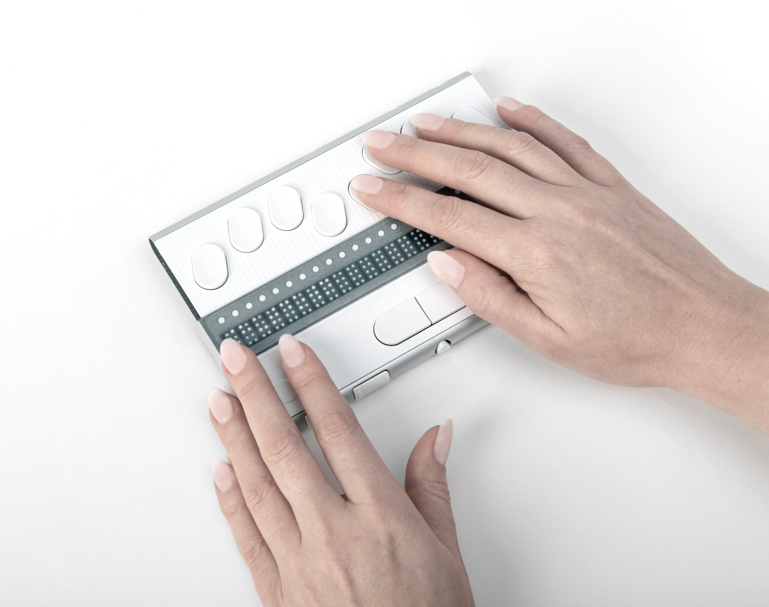 De 8-punts Perkins-toetsen en de dubbele spatiebalk met extra functies maken invoeren snel en efficiënt. Daarnaast beschermt de verwisselbare braillefolie je leesregel tegen slijtage.