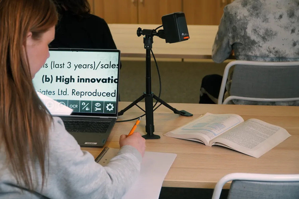 Gebruik je de MagniLink Mini in combinatie met een iPad? Dan kun je profiteren van optionele AI-functies. Vraag AI om tekst te vertalen, samen te vatten, handschrift te lezen of zelfs objecten te beschrijven. Dat maakt lezen, leren en werken nog eenvoudiger.